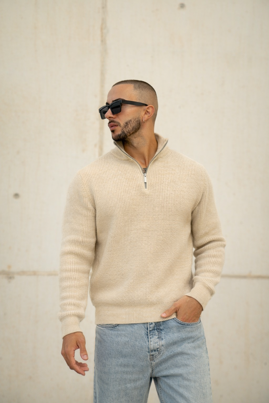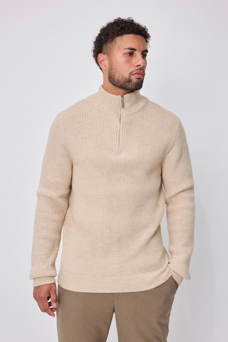 THE ENZO HALFZIP SWEATER - BEIGE